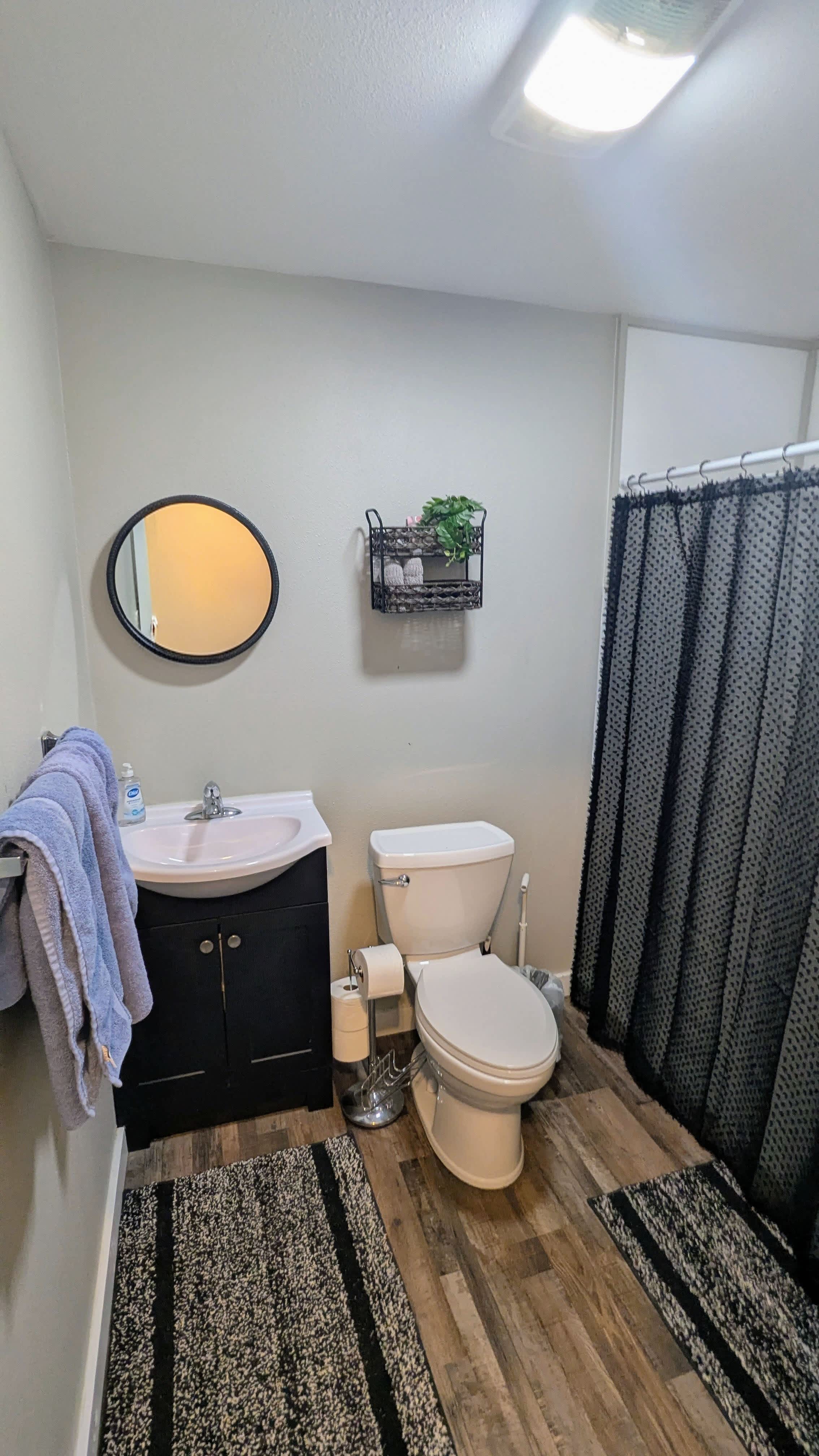 Single-level suite with open-concept layout connecting kitchen, dining, and living areas. Fully equipped kitchen includes modern appliances, coffee maker, toaster, and all cookware. Comfortable living room with seating. Spacious bedroom with quality linens. Full bathroom with shower. High-speed WiFi available. HDTV with Roku for entertainment.